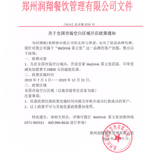 关于全国市场开we drinkWEDRINK茶主张的政策通知